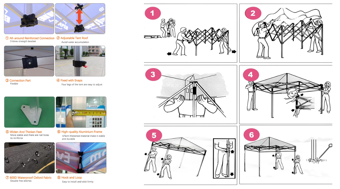Easy Setup and Adjustability: Batflags custom pop up tents are designed for quick assembly—set up in just 5 minutes with two people and adjust the height with four settings available.